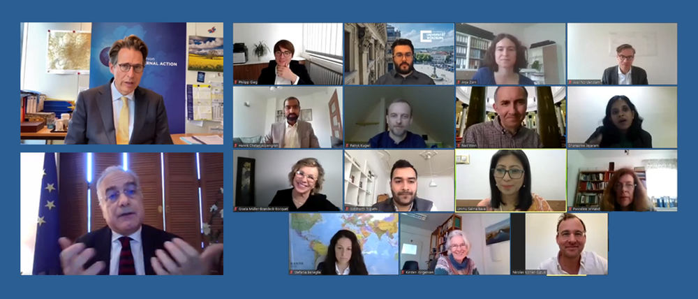After welcome remarks and a short presentation of the new book "EU-India Relations" by Philipp Gieg and Manuel Pietzko, Mr. Gunnar Wiegand, Managing Director for Asia and the Pacific at the European External Action Service, and Ambassador Ugo Astuto, Delegation of the European Union to India, delivered keynote speeches. Afterwards, three short talks by Dhanasree Jayaram, Nicolas Köhler-Suzuki and Patryk Kugiel cast spotlights on the state of the EU-India partnership in three policy fields: climate policy, trade, and multilateralism. Finally, the whole panel discussed the state of EU-India relations in 2021.