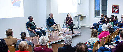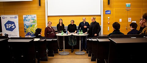 Prof. Dr. Giorgi Gvalia (Ilia State University, Tbilisi, Georgia), Maximilian Hartl (Leibniz Institute for East and Southeast European Studies Regensburg), Prof. Dr. Sonja Grimm (JMU Würzburg), a student activist from a Georgian student organization and Dr. Elena Dück (JMU Würzburg, chair of discussion) discussed Democratic Regression, "Foreign Agents" and External Pressure in the Southern Caucasus.