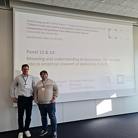 01.04.2025Was meinen Bürger*innen, wenn sie von Demokratie sprechen – und wie lässt sich das erforschen? Diesen Fragen widmete sich ein von Christoph Mohamad-Klotzbach mitorganisiertes Doppelpanel auf der DVPW-Sektionstagung für Vergleichende Politikwissenschaft in Saarbrücken.