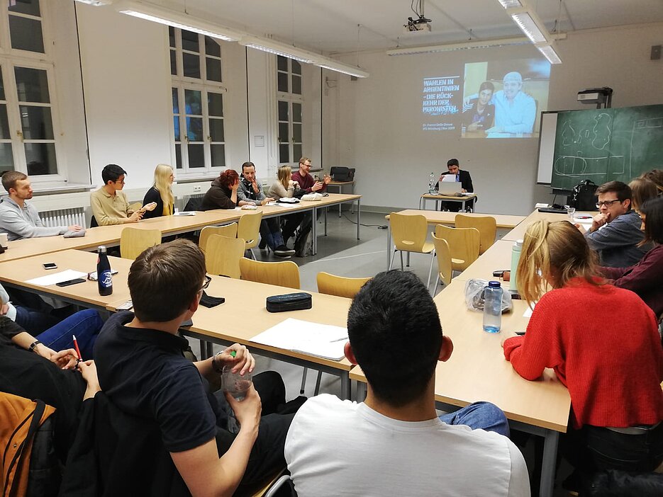 22.11.2019Am 19.11.2019 hielt der Kommunikationswissenschaftler Franco Delle Donne einen Vortrag zum Thema „Wahlen in Argentinien – Die Rückkehr der Peronisten“. Der Vortrag fand im Rahmen der Vortragsreihe „Lateinamerika im Umbruch“ des Interdisziplinären Arbeitskreises Lateinamerika statt.