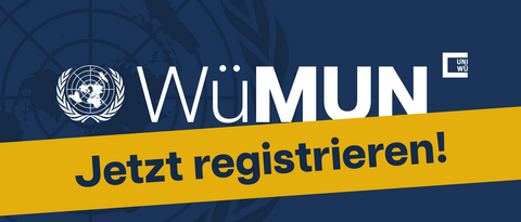 Am 8. und 9. Mai 2026 werden Studierende und Schüler:innen an der Uni Würzburg wieder Verhandlungen in den Organen der Vereinten Nationen simulieren. Alle Studierende können sich noch bis 22. April 2026 über WueStudy für WüMUN registrieren.