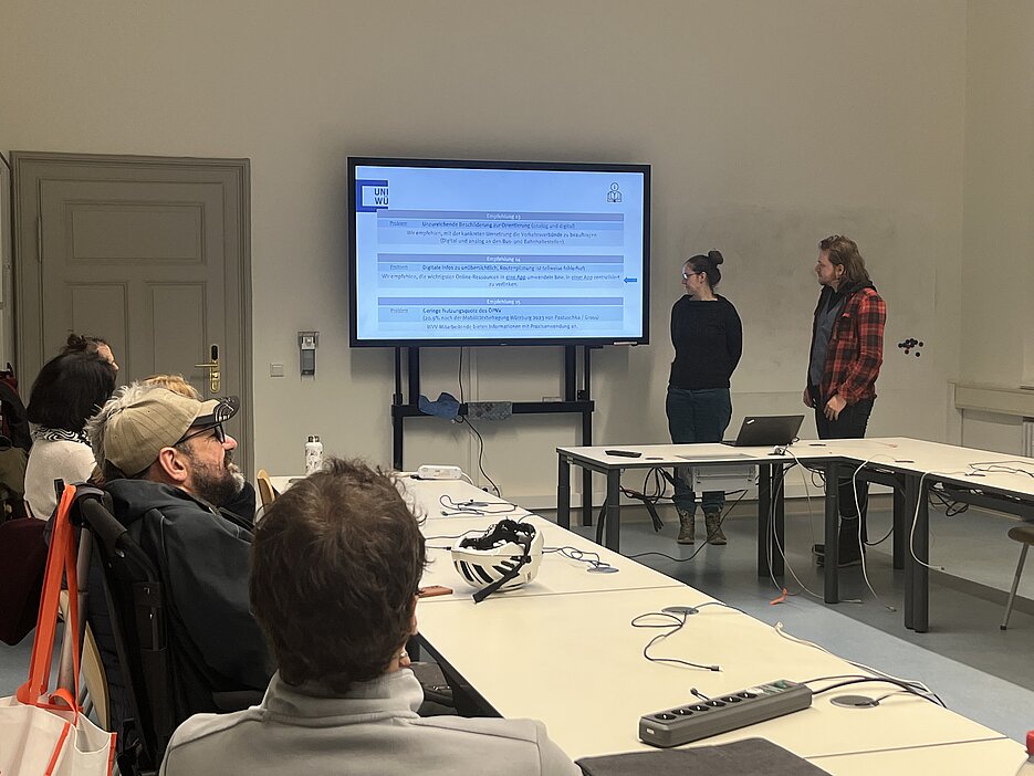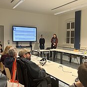 21.01.2026Im Rahmen der Veranstaltungsreihe des Forum Nachhaltigkeit fand am 21. Januar 2026 die dritte Veranstaltung für das Wintersemester 2025/26 zum Oberthema "Nachhaltigkeitspolitik in der Defensive?!" statt. Levi Rhomberg und Linda Koch (beide JMU) stellten den Würzburger Zukunftsrat als Beispiel für deliberative Demokratie vor. Eine anschließende Diskussionsrunde mit Teilnehmenden des Zukunftsrats vertiefte die Einblicke in Würzburgs ersten Bürger*innenrat.